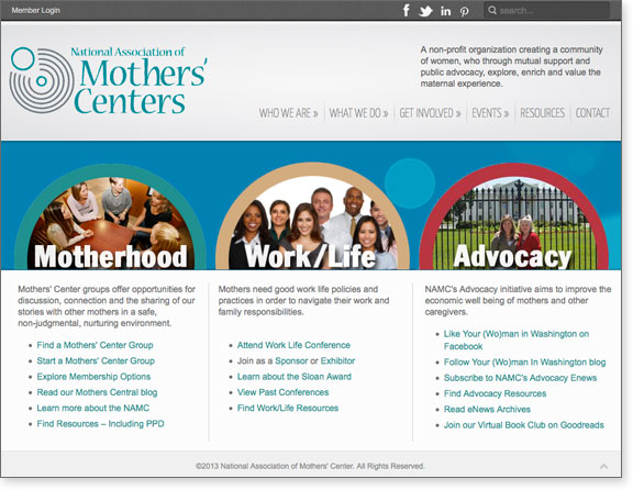 As an organization the National Association of Mothers’ Centers works hard to build a community of women, who through support and advocacy, explore, enrich and value the maternal experience. Lucille Ball once said the wise words, “Love Yourself and everything else falls into line.” Now that we’ve place more value on our online home, we are better able to serve you—those who might need our resources and support most.